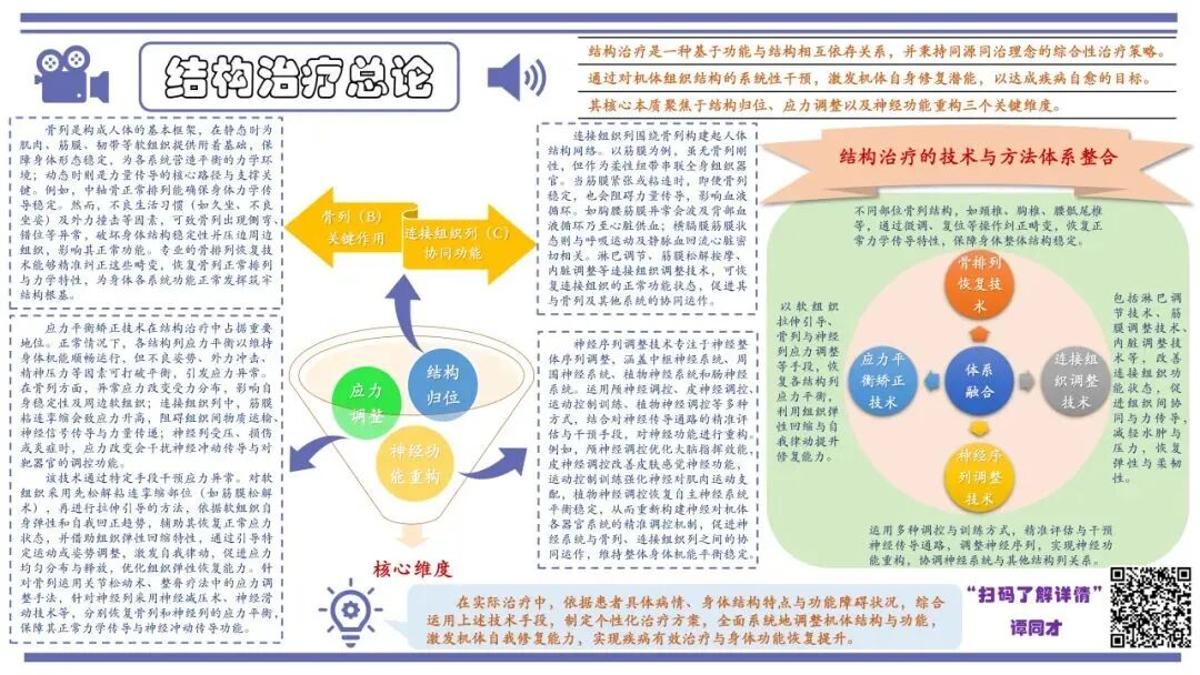 结构治疗是一种基于功能与结构相互依存关系,并秉持同源同治理念的综合性治疗策略。其核心本质聚焦于结构归位、应力调整以及神经功能重构三个关键维度,通过对机体组织结构的系统性干预,激发机体自身修复潜能,以达成疾病自愈的目标。